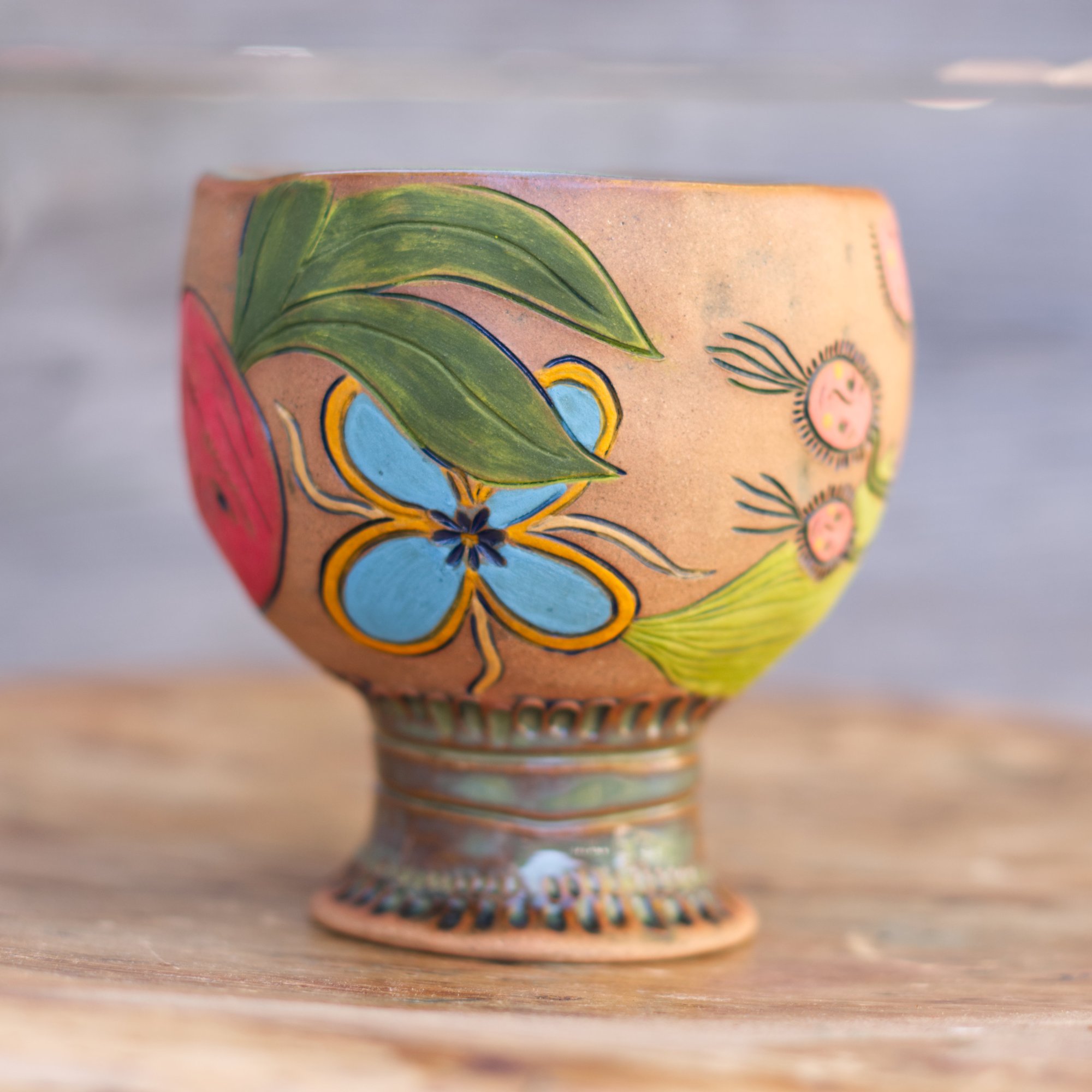 The design on this handbuilt goblet is inspired by the Erbario, a 15th century Herbal manuscript from Central Italy (see more about the original document here: https://publicdomainreview.org/collection/erbario-15th-century-herbal)